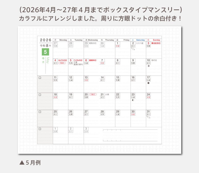 2026年4月~2027年4月までのボックスタイプマンスリー版