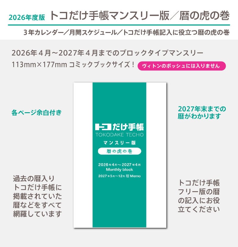 ●2026トコだけ手帳マンスリー版/暦の虎の巻